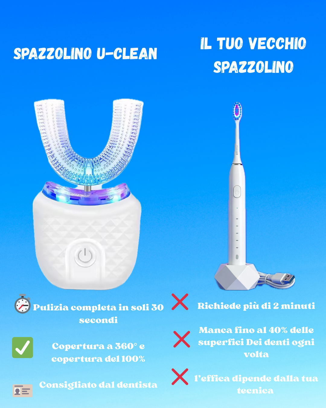 “Spazzolino a U sonico che pulisce tutti i denti in una volta, ideale per chi non ha tempo di lavarsi i denti a lungo.”